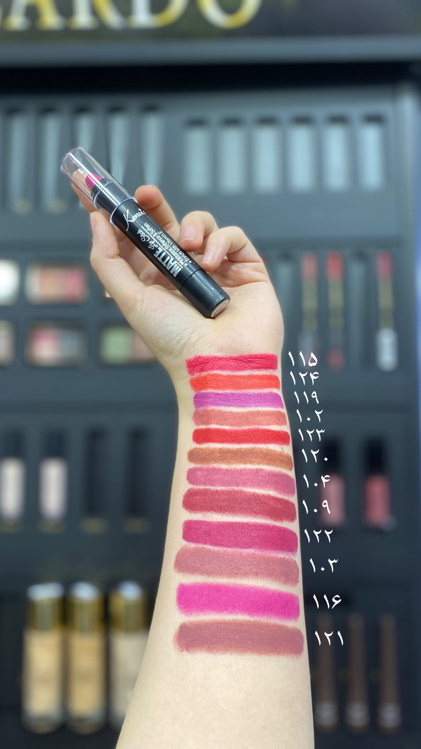بافت مخملی و مات پوشانندگی بالا ماندگاری بالا حاوی روغن آرگان وآلوئه ورا رطوبت رسان لب رنگدانه قوی و غیر چسبنده